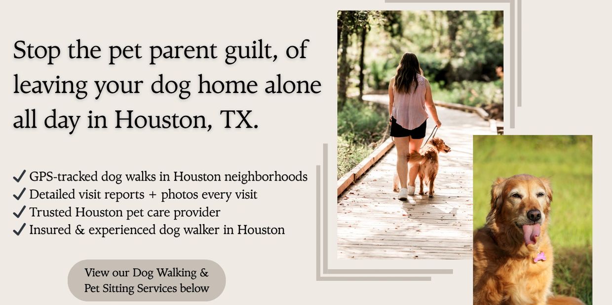 The Golden Leash provides reliable dog walking in Houston and in-home pet sitting services—so your dog gets the care they need, even on your busiest days - no guilt required and a win, win for you and your dog!